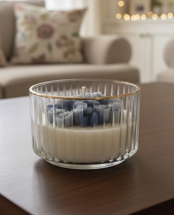 100% natural soy, hand‑poured; soft fragrance, lasting warmth in any room.